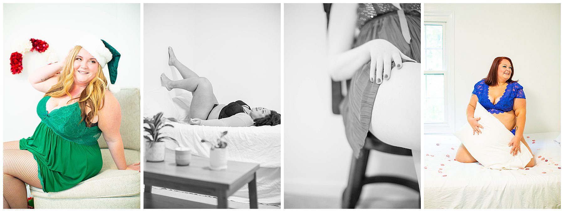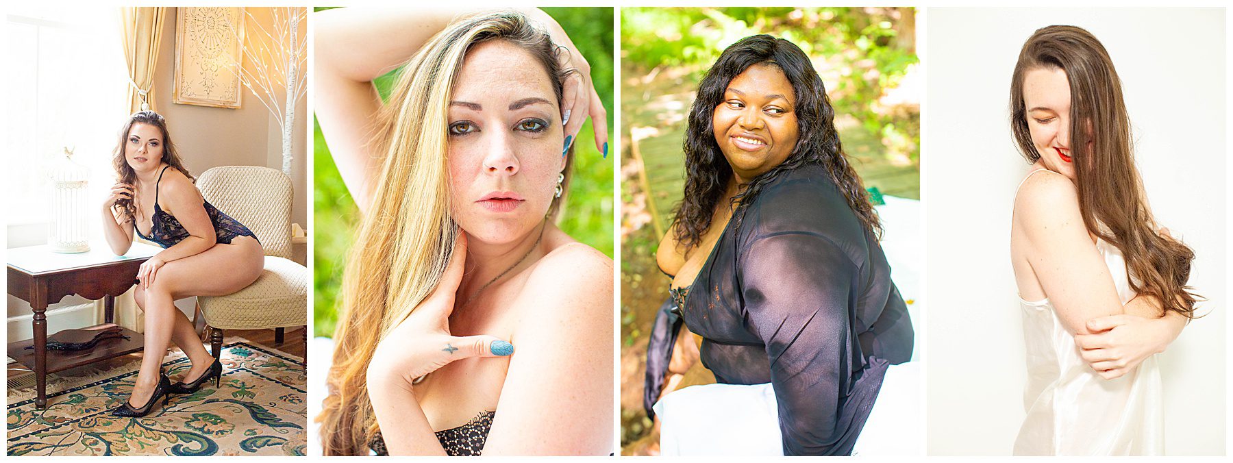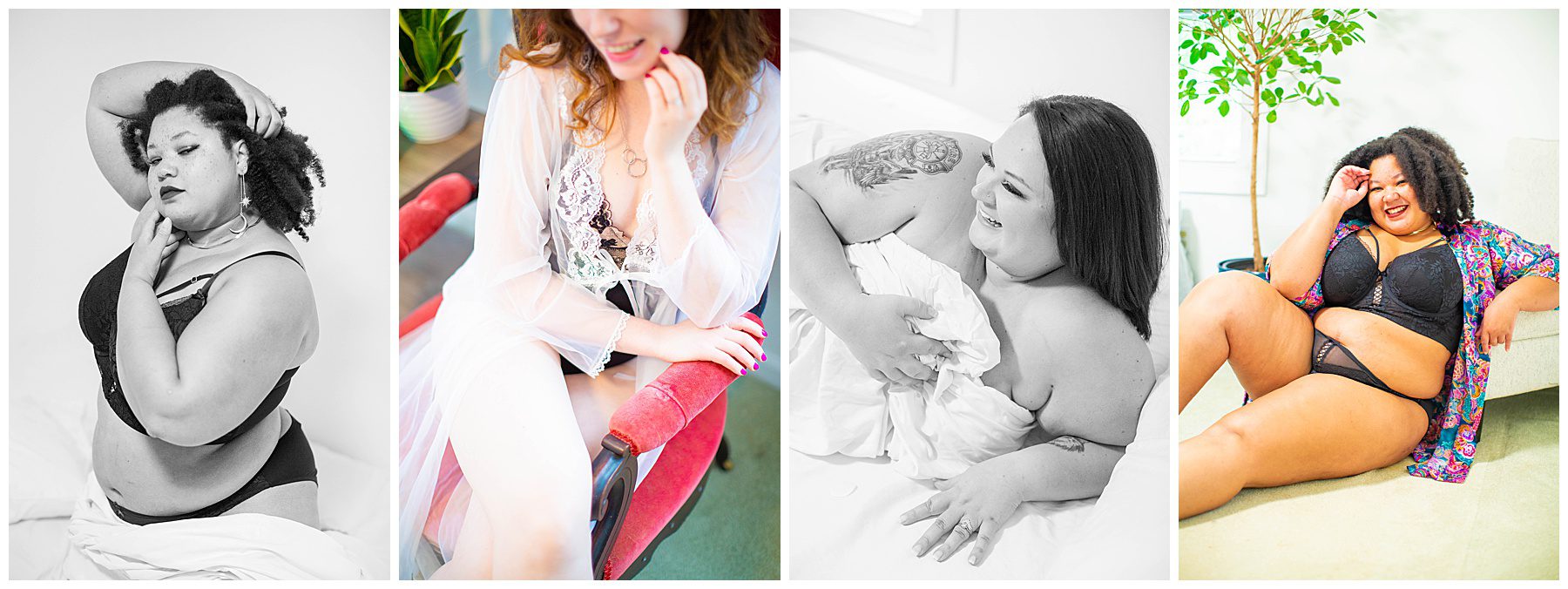 Come unleash your inner goddess. The boudoir experience will leave you feeling empowered, confident, feminine, and alluring. Every person's body is exquisite and unique. This experience is for everyone, no matter what shape or size. All phases of life are beautiful, and you are bewitching, hon!